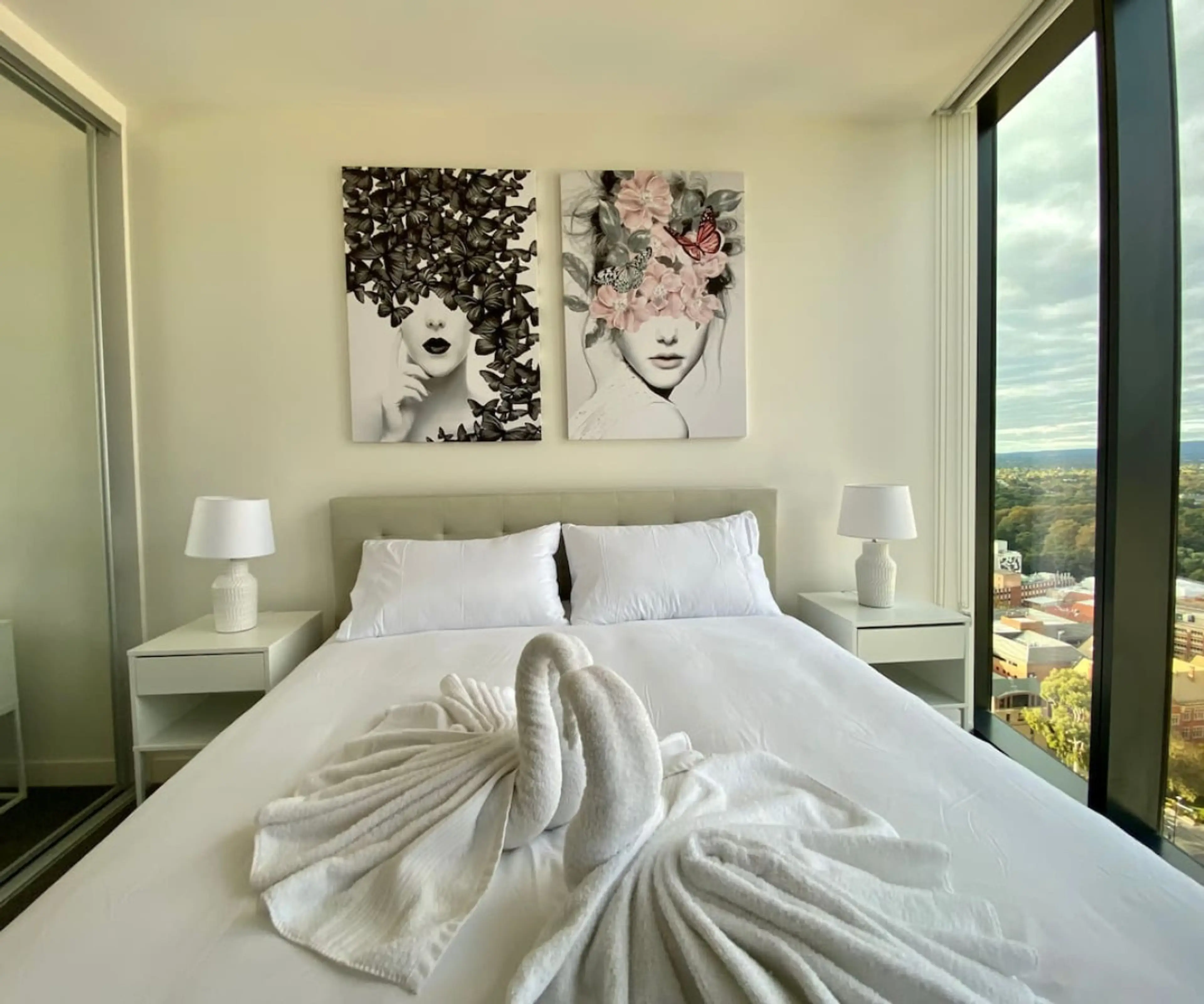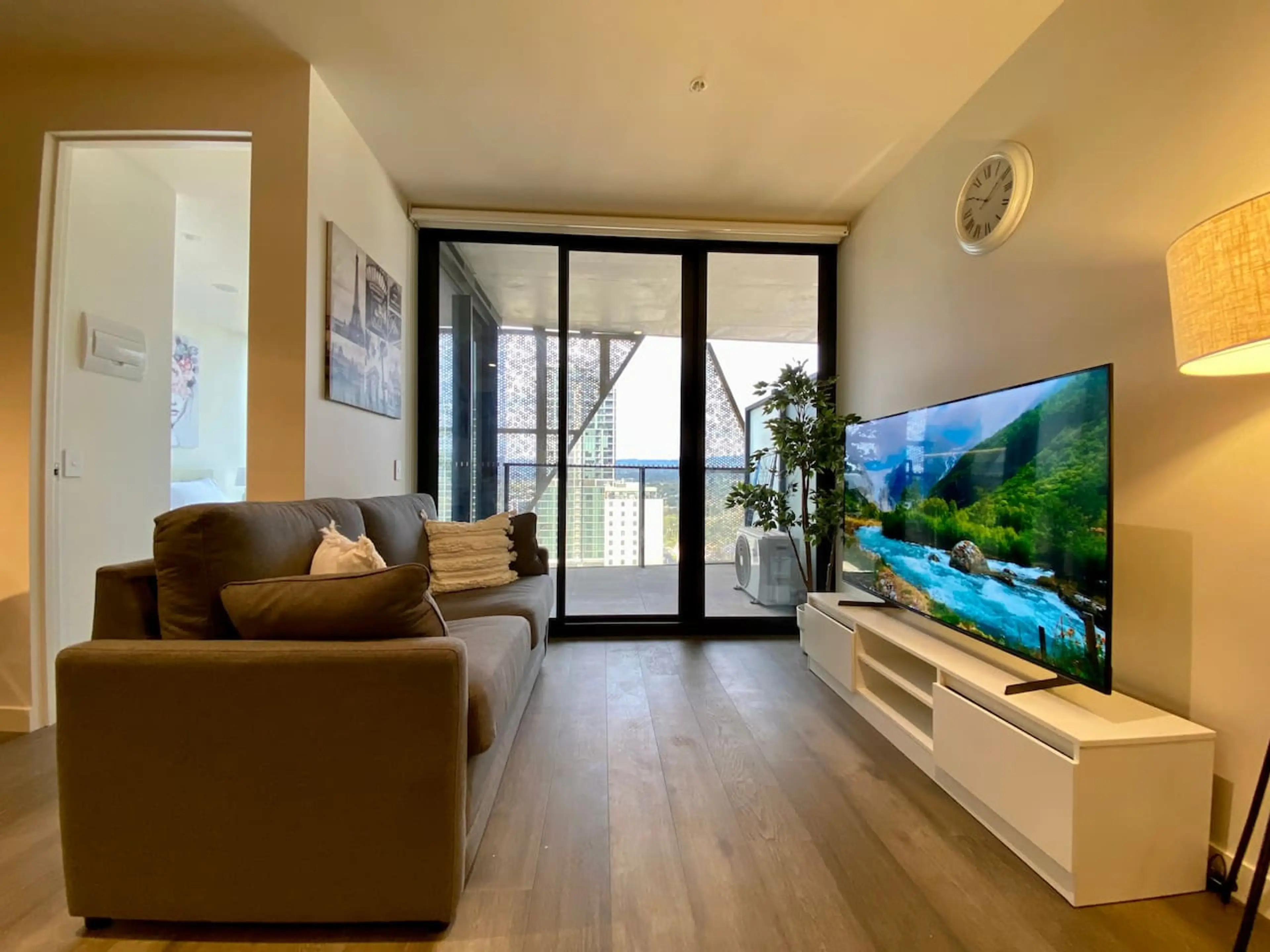 Thoughtfully decorated with brand new modern furnishings inspired by Parisian culture with stunning views of the city from level 25 Spacious and fully furnished including a comfortable Queen Bed, study table, 2-seater dining table, two-seater lounge sofa, fully equipped kitchen and washing machine....