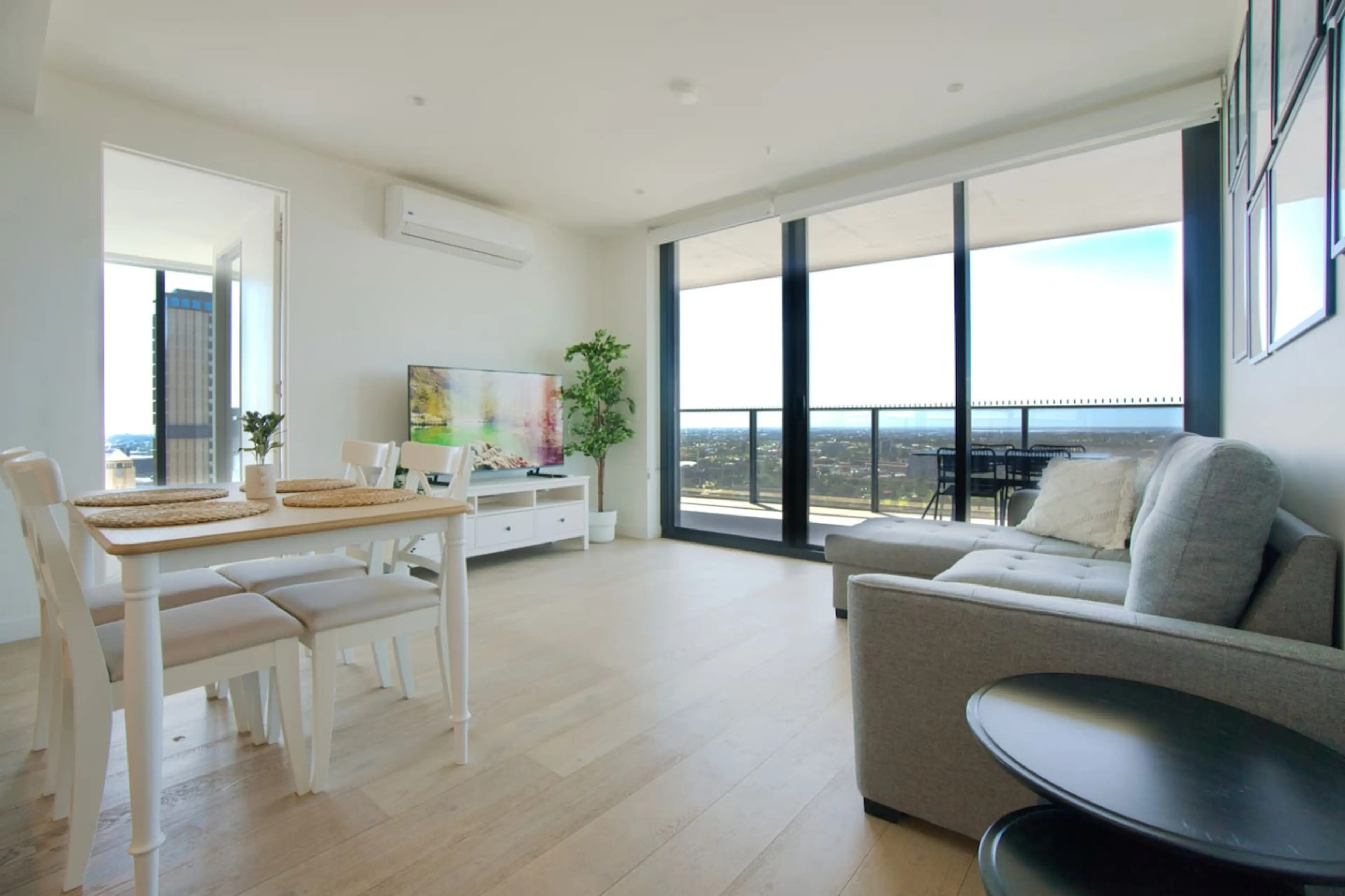 Stylishly decorated with brand new modern furnishings inspired by contemporary art with stunning uninterrupted views of the Adelaide City Skyline from a spacious level 27 balcony. Sleeping arrangements - our apartment includes a King Bed, 2 Single Beds, and a sofa that can be converted into a bed t...