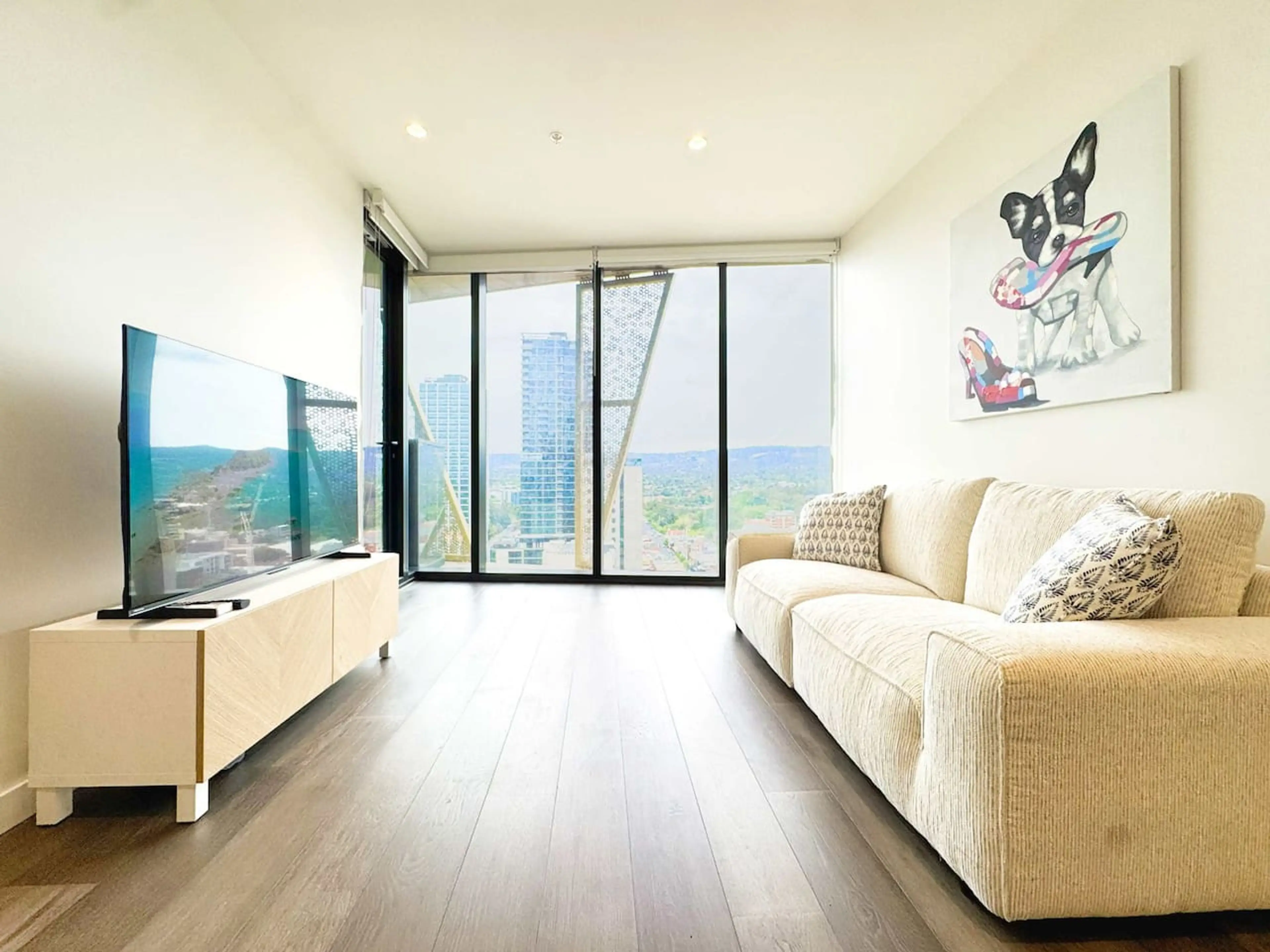 Enjoy our modern and tastefully decorated apartment located in Rundle Mall with stunning city views from level 22. Spacious and fully furnished including a comfortable Queen Bed, 2-seater dining table, 2.5 seater sofa, fully equipped kitchen, washing machine and separate dryer, and outdoor table. ...