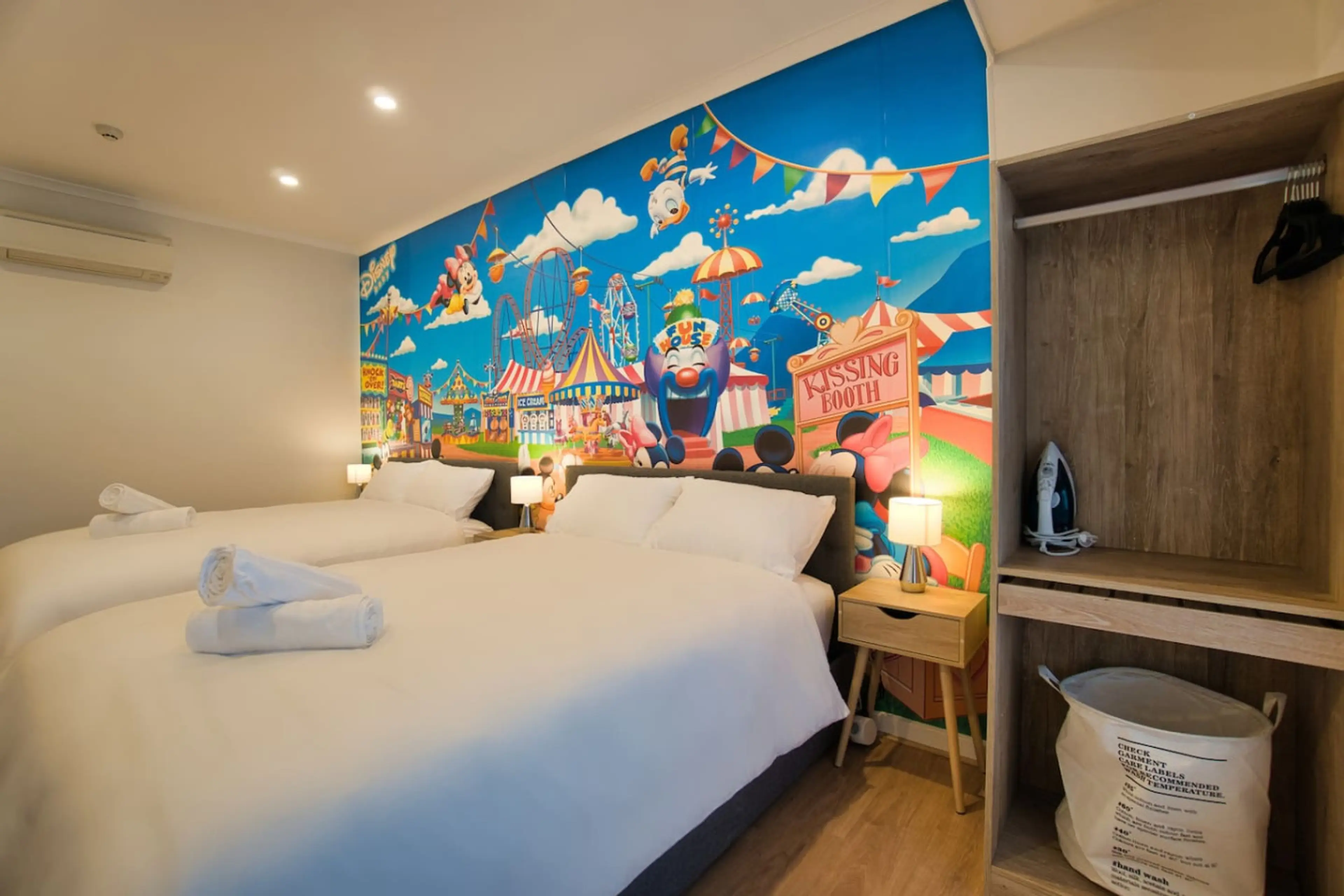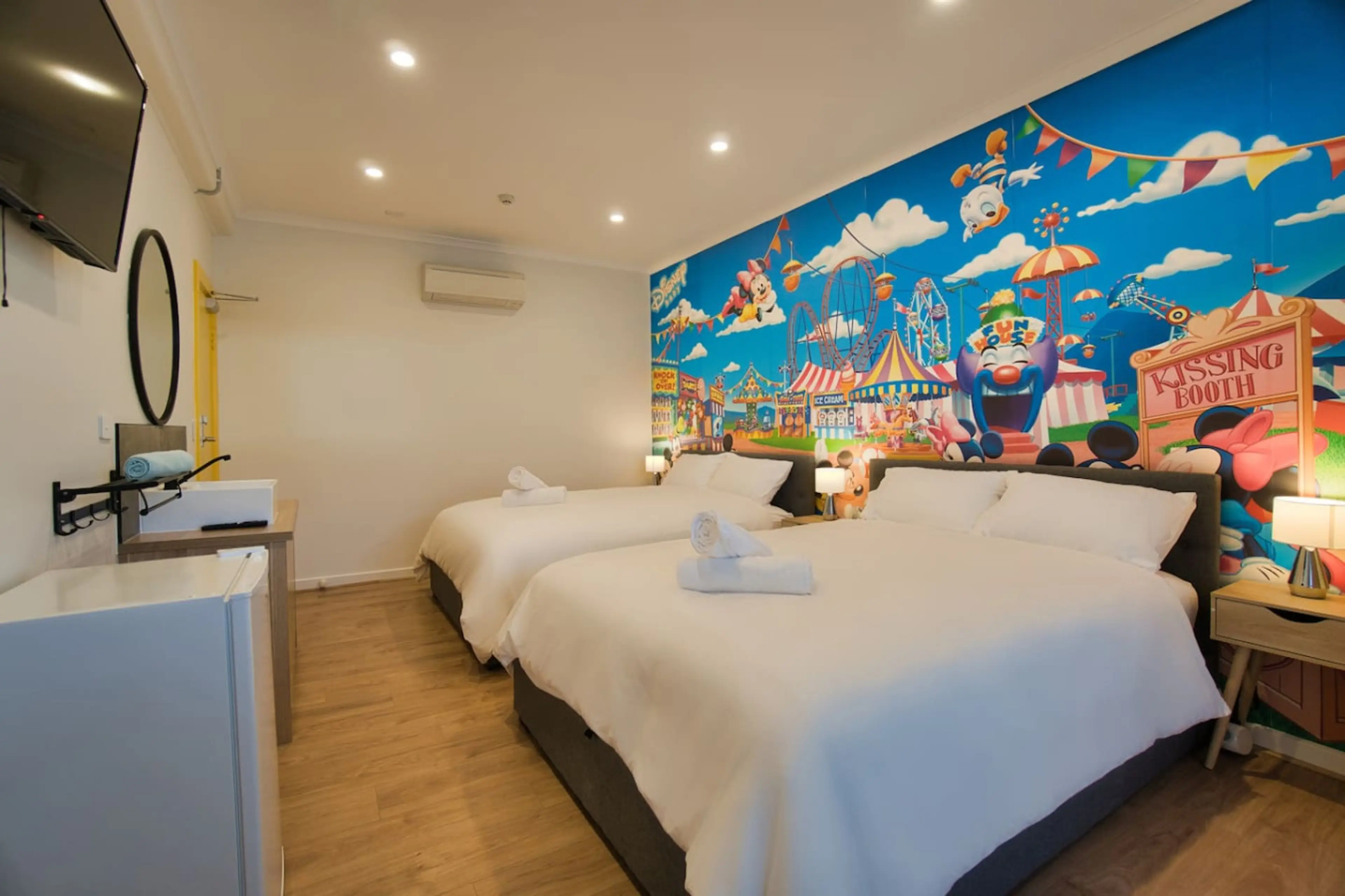 Take a step into Dreamy Night Accommodation and explore the 8 different wonders we have to offer. Dreamy Night is located in the heart of Adelaide CBD with a short walking distance to Central Market and Rundle Mall. This private room is inspired by Mickey Mouse. Designed to keep you and your family...
