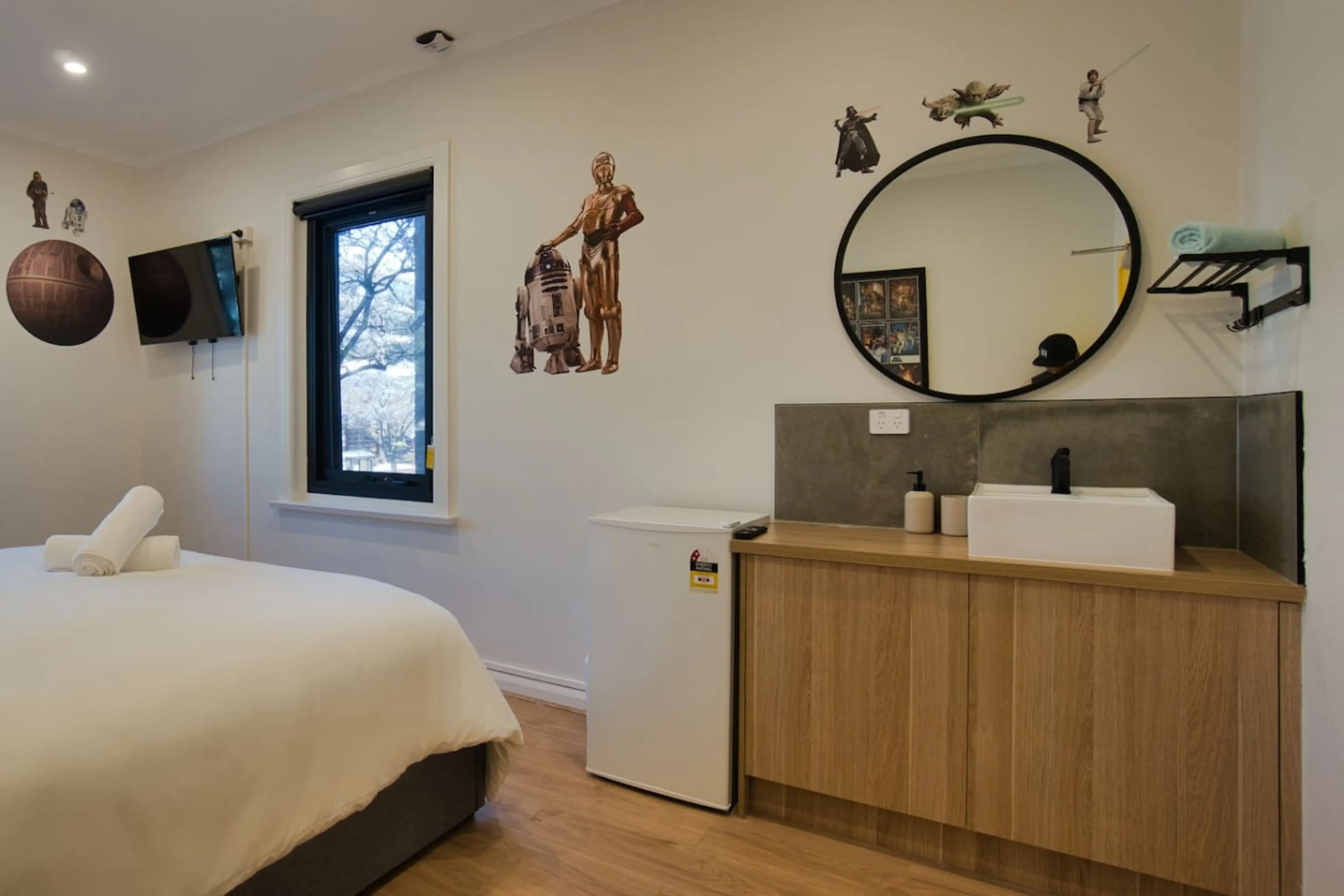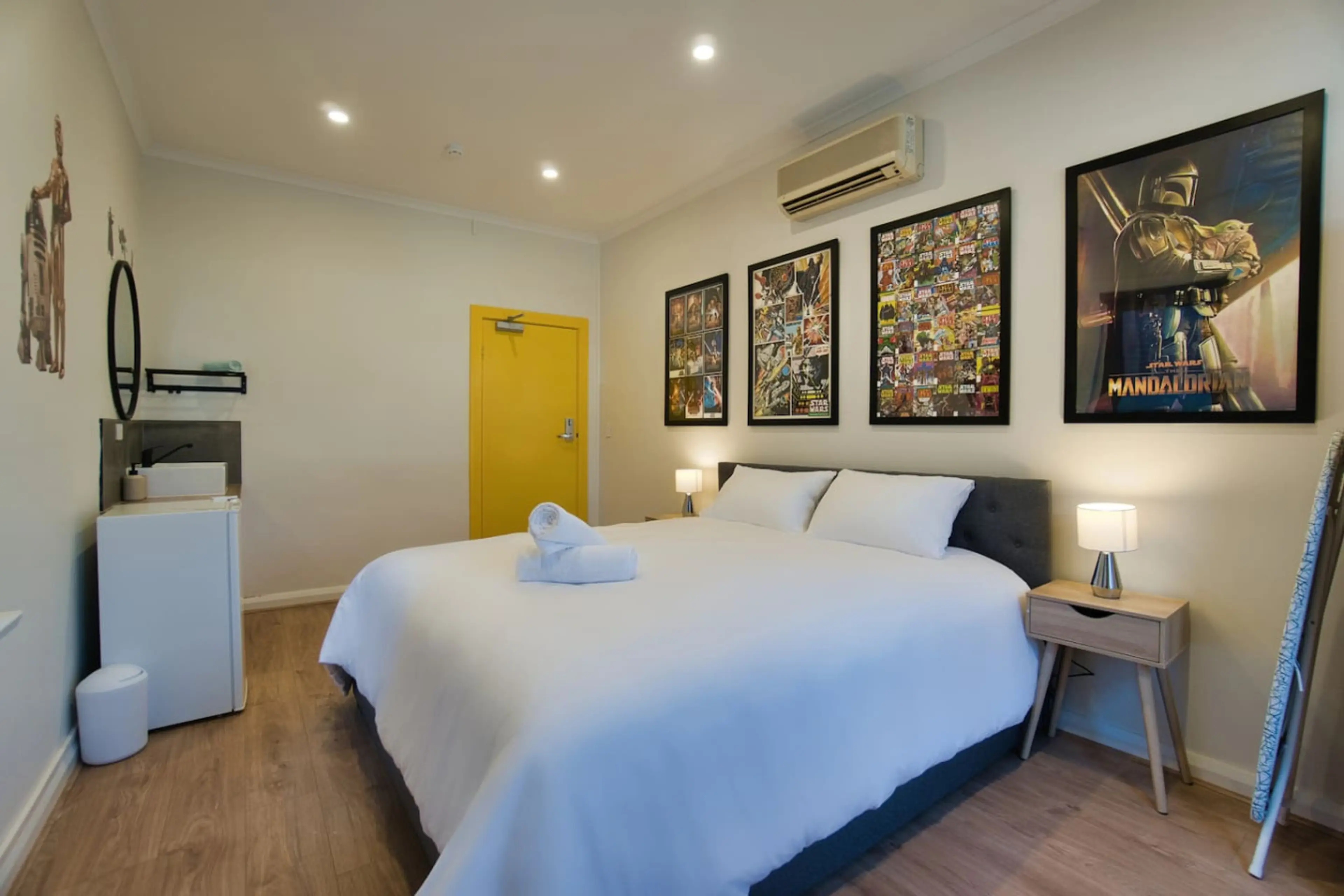 Take a step into Dreamy Night Accommodation and explore the 9 different wonders we have to offer. Dreamy Night is located in the heart of Adelaide CBD with a short walking distance to Central Market and Rundle Mall. This private room is inspired by Star Wars. Designed to keep you and your family en...